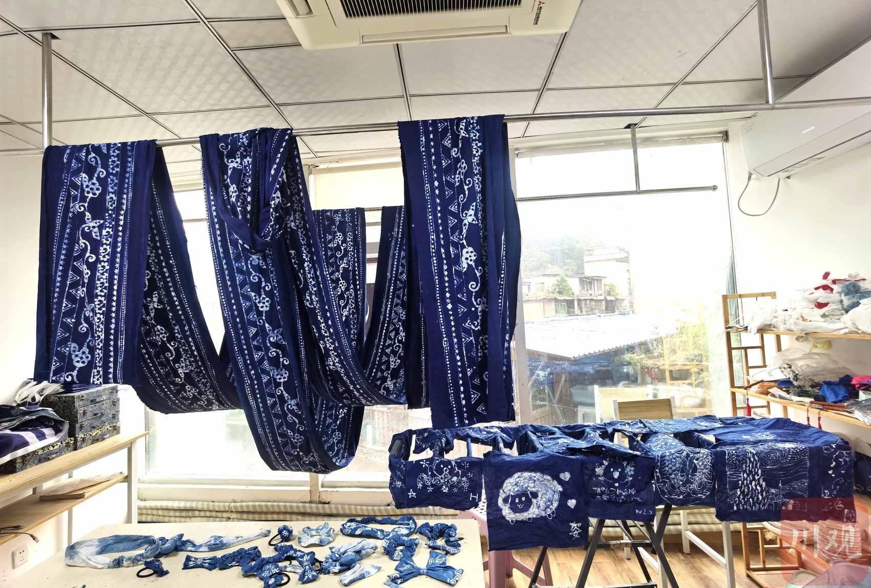 “工作室的作品在珙县非物质文化遗产馆设有专区展示、销售。我们还通过抖音号‘珙州非遗’直播讲解,向大众推广蜡染成品。”刘宇说。