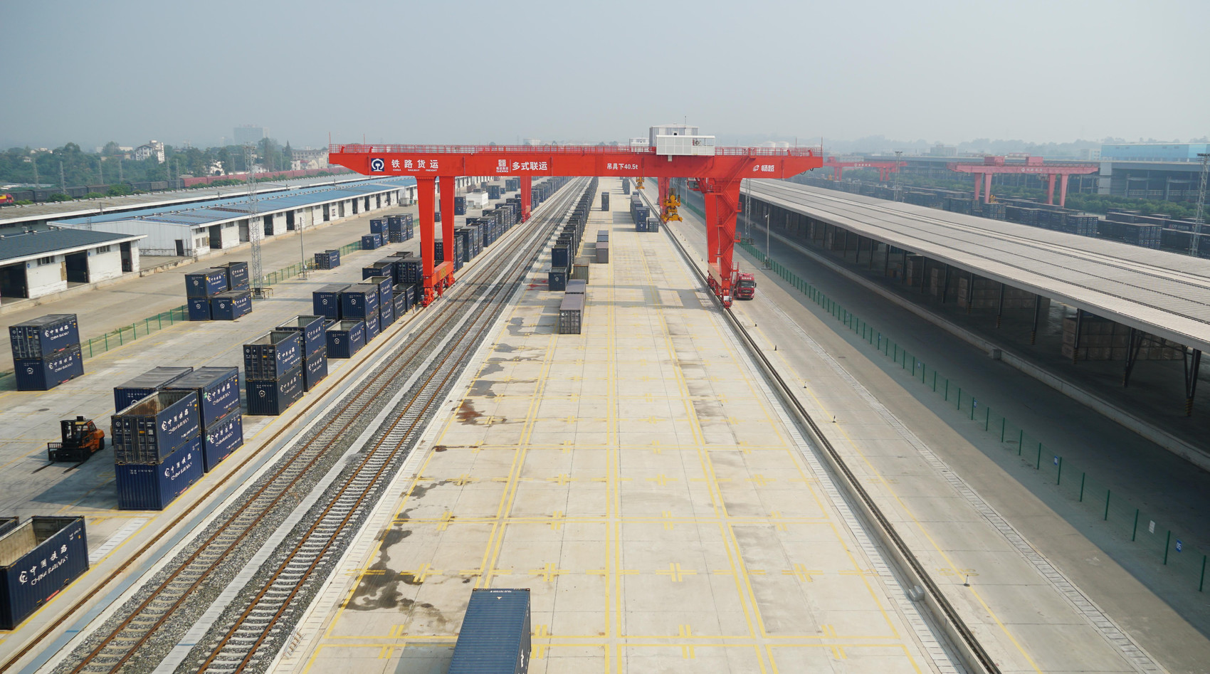 该项目位于成都市新津区境内的普兴站,紧邻成雅高速和成都第二绕城高速,配备贯通式集装箱装卸线2条、集装箱专用门吊4台、集装箱作业区55849平方米,年设计能力达400万吨/年,折合集装箱约为17.9万TEU/年,具备国际班列40英尺标准集装箱快速作业能力,可满足周边区域生产制造企业和商贸流通企业的铁路集装箱装卸、仓储及运输需求。