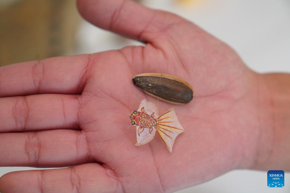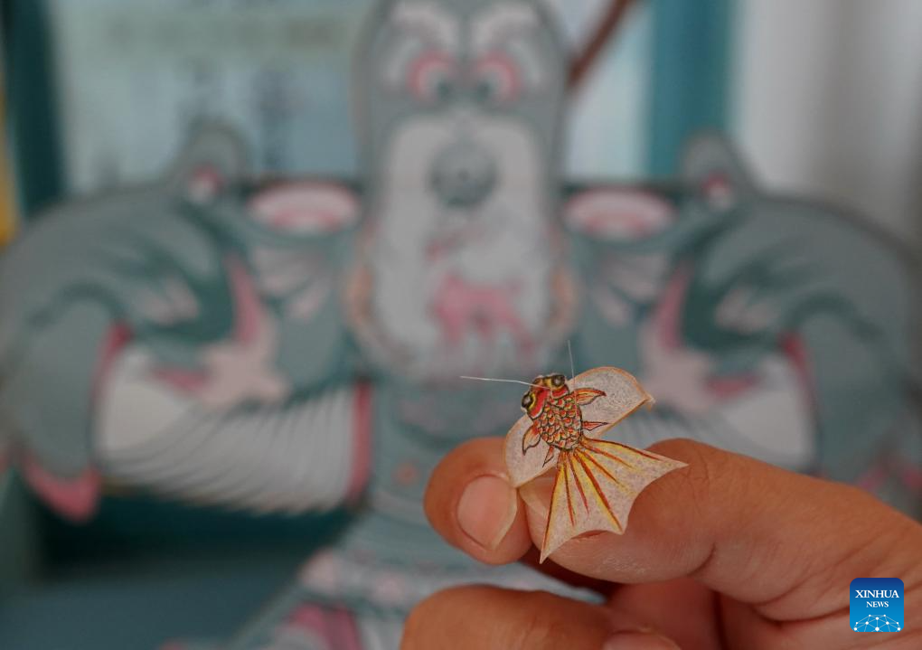 A miniature kite is pictured at a kite workshop in Hanting District of Weifang, east China's Shandong Province, Oct. 14, 2024. The kite culture and thriving kite industry in Weifang have a long and rich history. In 2006, the manufacturing skill of Weifang kites was listed as a national intangible cultural heritage.