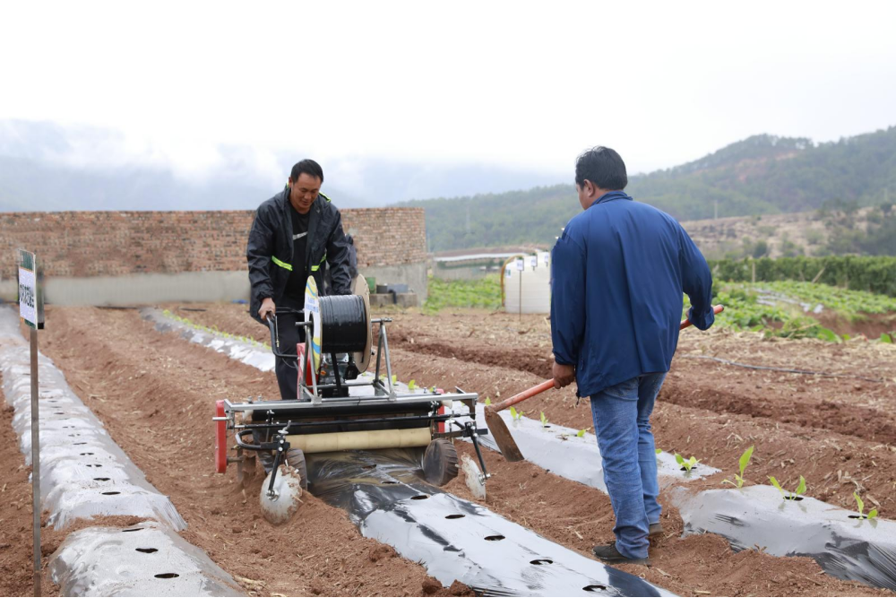针对农机适应农艺难度大、农艺适应农机探索少的问题,攀枝花市烟草专卖局(公司)围绕农机农艺融合开展技术改革,将覆膜铺管一体机、移栽器等农机具与“先膜后烟”技术深度融合,优化再造烟叶移栽流程,实行“整地—起垄—覆膜铺管—栽烟—滴水”五步栽烟法,并将烟叶移栽9道工序融为一体,大大提高了生产效率。