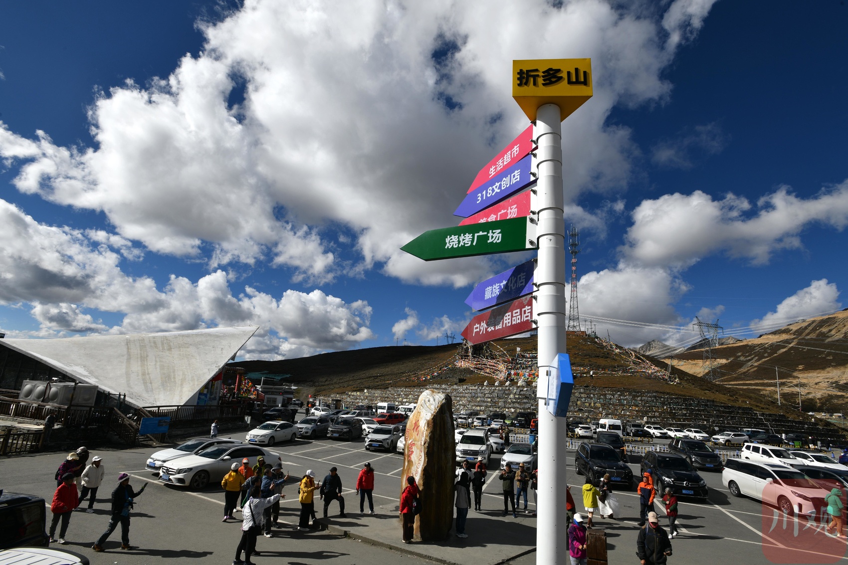 2022年上半年折多山垭口进行了全面改造,从原来只有一尊巨石地名标志,拓展到了集美食广场、318文创店、生活超市、藏族文化店以及户外装备用品店为一体的综合服务区。垭口还设置了多处停车场,方便了自驾旅行者停车打卡。
