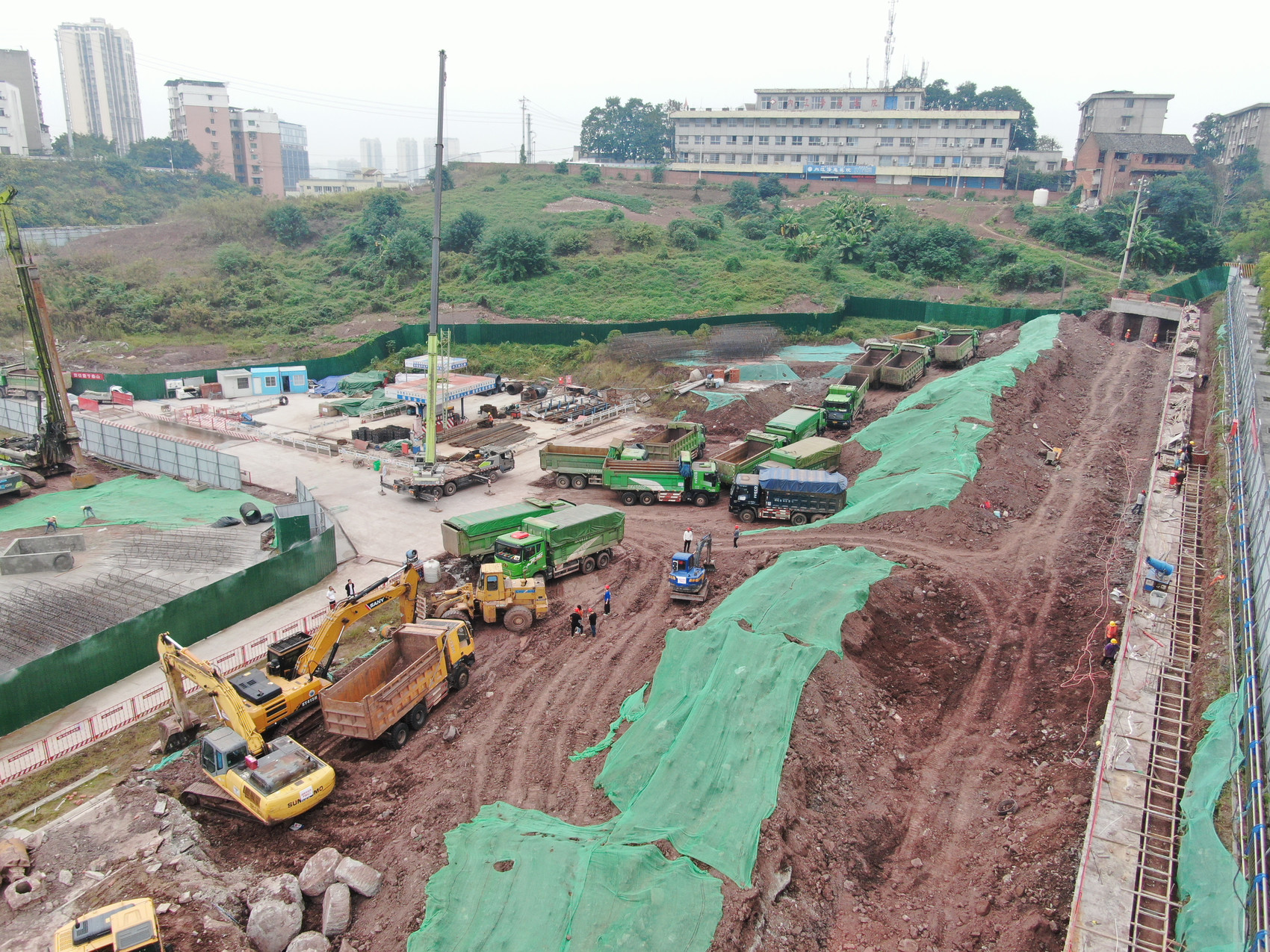 10月16日,内江市市中区妇幼保健院二期项目施工现场一派繁忙,多台挖掘机和起重机正紧张作业,进行主体开挖及挡墙施工。该项目位于城南新区康健路,建设内容包括住院综合楼、中心供氧站、垃圾站及地下室等附属工程,旨在完善区保健院业务用房配置。