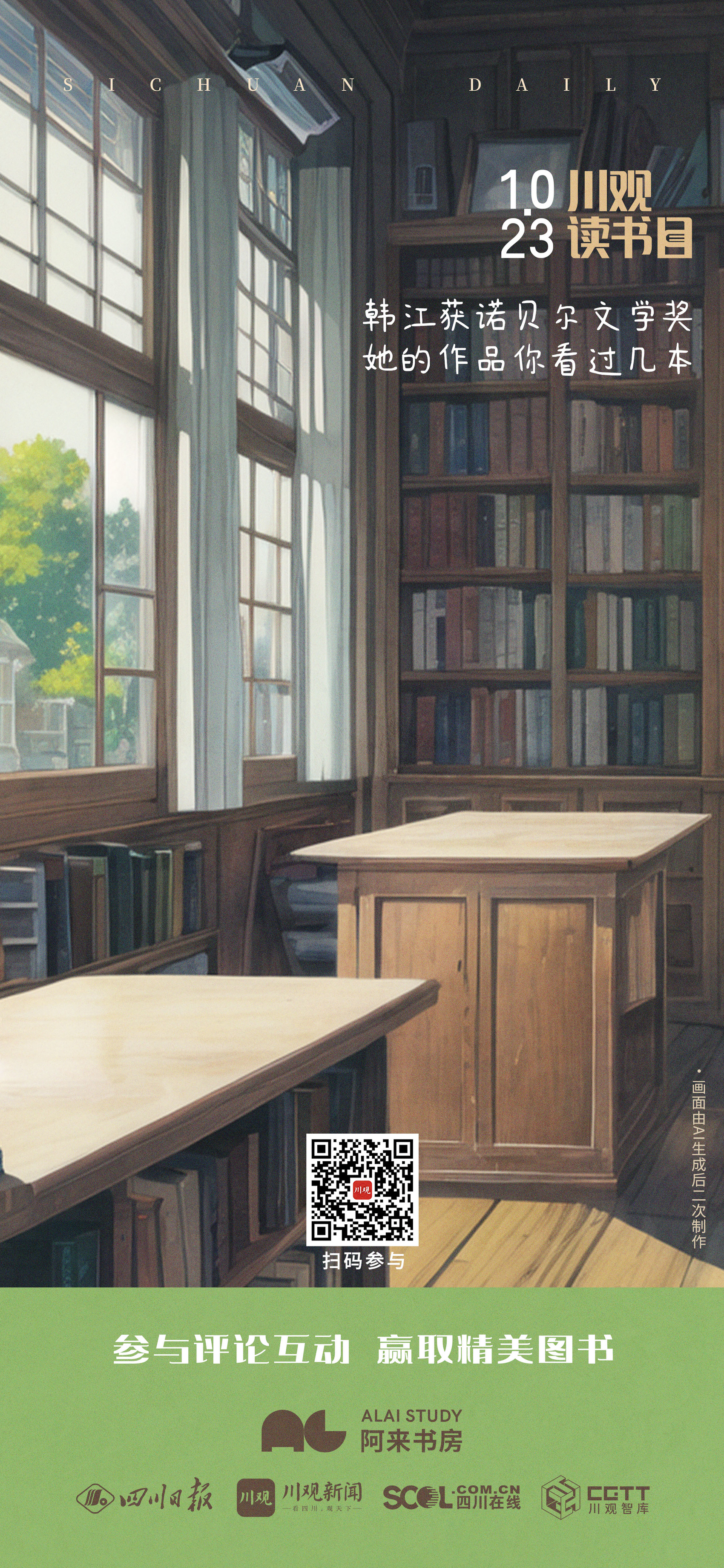 还真没看过,既然是诺贝尔文学奖获得者,韩江的作品肯定有独到之处,10月川观读书日,买几本韩江的书认真读下,感受下诺贝尔文学奖的魅力,感受下文学的魅力。