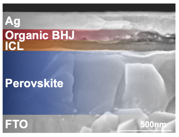 钙钛矿-有机叠层太阳能电池扫描电镜截面图。(中国科学院化学研究所供图)