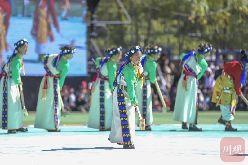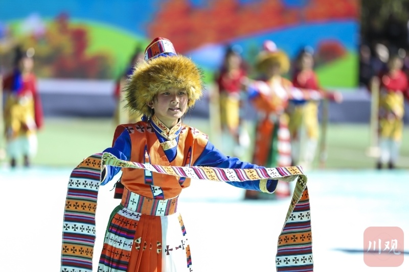 10月18日,2024年四川省生态旅游活动暨黑水县第十二届冰川彩林生态文化旅游季及黑水原生态锅庄比赛上,孩子们压轴出场,引起观众阵阵欢呼。据了解,卡斯达温舞和阿尔麦多声部民歌为国家级非遗项目,圈德迪为省级非遗项目。融合3项非遗项目的这场压轴演出,也是黑水非遗进校园的成果展演。