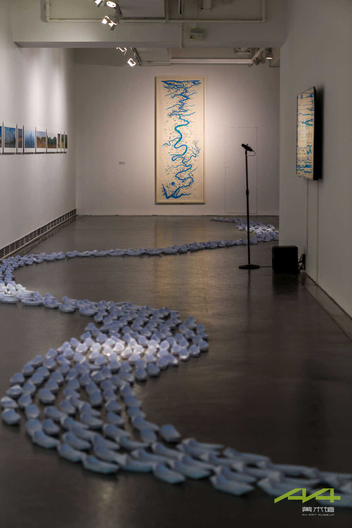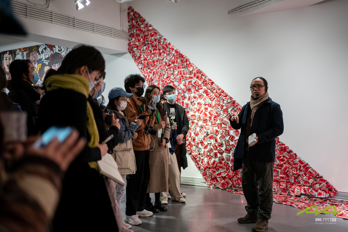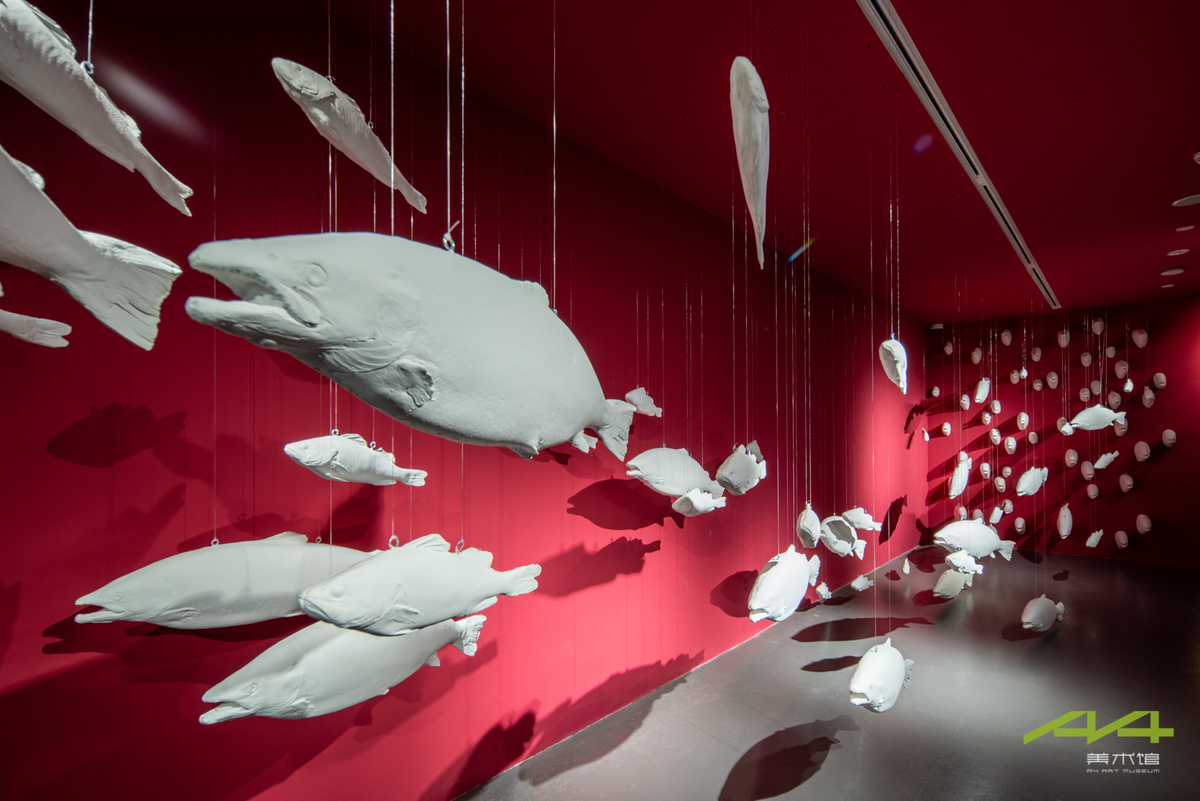 相距不远的A4美术馆2号展厅,则呈现着“顾雄-河流”的作品。进入这个位于二楼的展厅,极具艺术张力的作品直击人心,这里观众可以看见由数百条三文鱼、3000只压扁的可乐罐和5000条纸船组成的巨型河流,艺术形式颇为震撼。