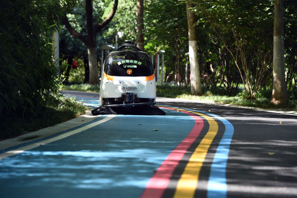 2022年6月24日,智能无人清扫机器人在安徽合肥一处公园清扫路面。