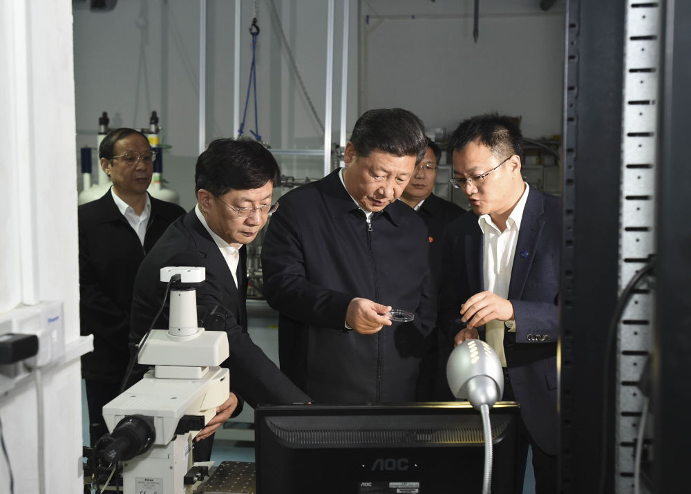 2016年4月26日,习近平在中国科技大学近代物理系自旋磁共振实验室了解科研情况。