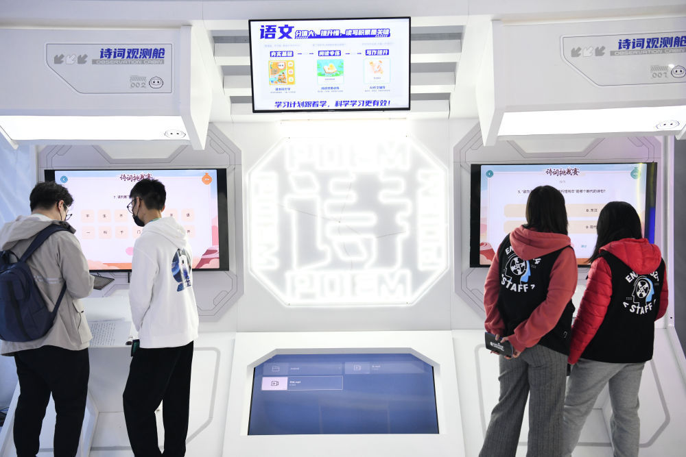 2022年11月17日,观众在于安徽合肥举办的第五届世界声博会上体验教育领域智能产品。