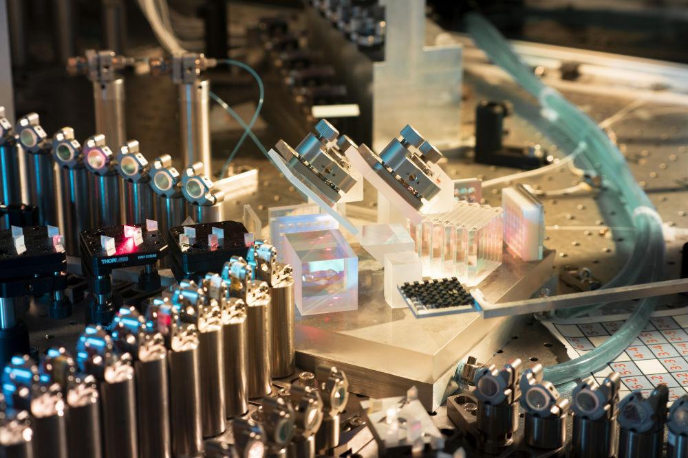 这是在中国科学技术大学拍摄的用于“九章三号”实验的光学干涉仪(资料照片)。量子计算原型机“九章三号”由中国科学技术大学研究团队与中国科学院上海微系统与信息技术研究所、国家并行计算机工程技术研究中心合作成功构建,刷新了光量子信息技术世界纪录。