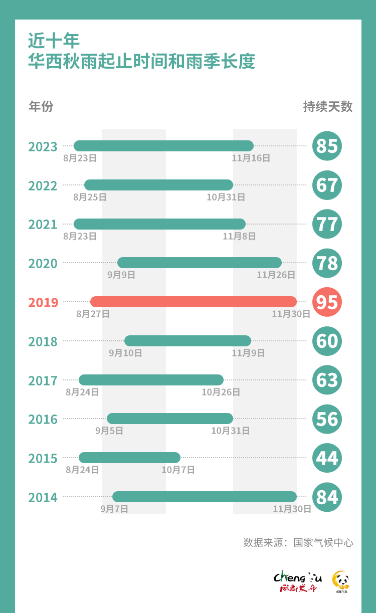 它主要影响湖北西部、湖南西部、重庆、四川、贵州、陕西关中和陕南、宁夏、甘肃东部和南部一带,古诗词“秋雨,秋雨,无昼无夜,滴滴霏霏”描绘的就是这种秋雨连绵不断的景象。