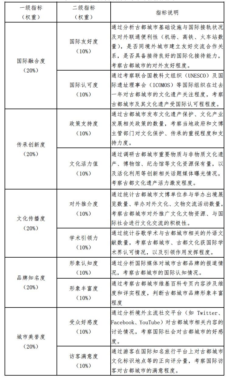 “2019年中国古都城市国际化水平评估”聚焦我国古都城市文化的海外影响力,围绕城市历史、文物遗产和文化资源三类要素,对照文化传承、改革创新、宣传推广和国际传播四大领域,以古都城市品牌国际传播、行业认同、权威机构认证等方面现状为基础,探索构建古都城市国际化水平评价指标体系。
