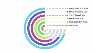 建设大规模、可持续增长的数据库是保护开发语言资源的基础。我国语言分布范围广,种类繁多、类型关系复杂,语言数据包括文本、图像、音频、视频等多种类型。放眼全国乃至世界,多媒体大语言数据库的成熟先例屈指可数。面向我国语言的实际面貌,清华大学教授李涓子带领课题组通过分布式多媒体数据库、基于GIS系统(地理信息系统)的数据可视化展示、以流媒体技术为核心的展示交互三大关键技术解决了语言资源的存储、展示、检索和比较等难题。先逐个查证所有调查点的经纬度,再利用GIS系统接口,采用自动化数据统计和分析算法,最终实现按条目生成方言特征分布图。数字化技术让语言数据剥去了艰涩难懂的外壳,重新回归到大众熟悉的表达方式中,让跨越千年的中华语言文化得以永久流传。