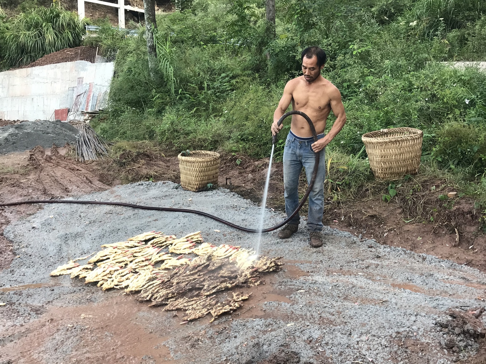 由于“顶新生姜”在采挖时很费劳力,许多缺劳力的农户家庭,只有雇请壮劳力挖姜、清洗,当地一些中青年农户每年这个时候都能挣上一笔。当天,正在帮陈华云挖姜的农户李元清说:“今年,我已帮人挖姜两三个月了,1天能挖七八百斤,然后,冲洗干净交给雇主,每斤我能挣1元钱!”