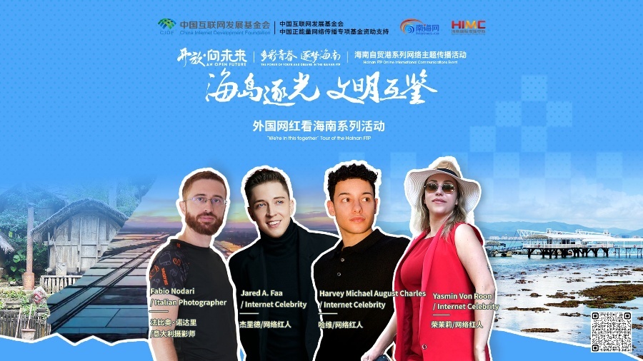即日起,由中国互联网发展基金会中国正能量网络传播专项基金资助支持,南海网、海南国际传播中心联合举办的“海岛逐光 文明互鉴”外国网红看海南系列活动,邀请外籍自媒体博主,以海南环岛旅游公路为线,深入海南自由贸易港的不同地区,通过可观可感的文化体验,用镜头向世界“沉浸式”感受海南自由贸易港的魅力体验。敬请持续关注。