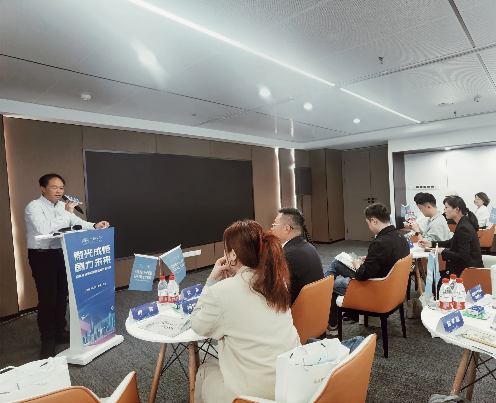 10月24日下午,“微光成炬 并力行远”成都网络微短剧高质量发展沙龙活动在汇文·文化产业园举办,该活动由成都市文化产业发展促进中心主办,成都市文化金融服务中心、成都市互联网文化协会、成都天府文创金融科技有限公司等承办,由四川省网络作协作家协会、四川省网络视听协会微短剧专委会、四川文投汇文·文化产业园、成都市影视制片行业协会等单位支持。