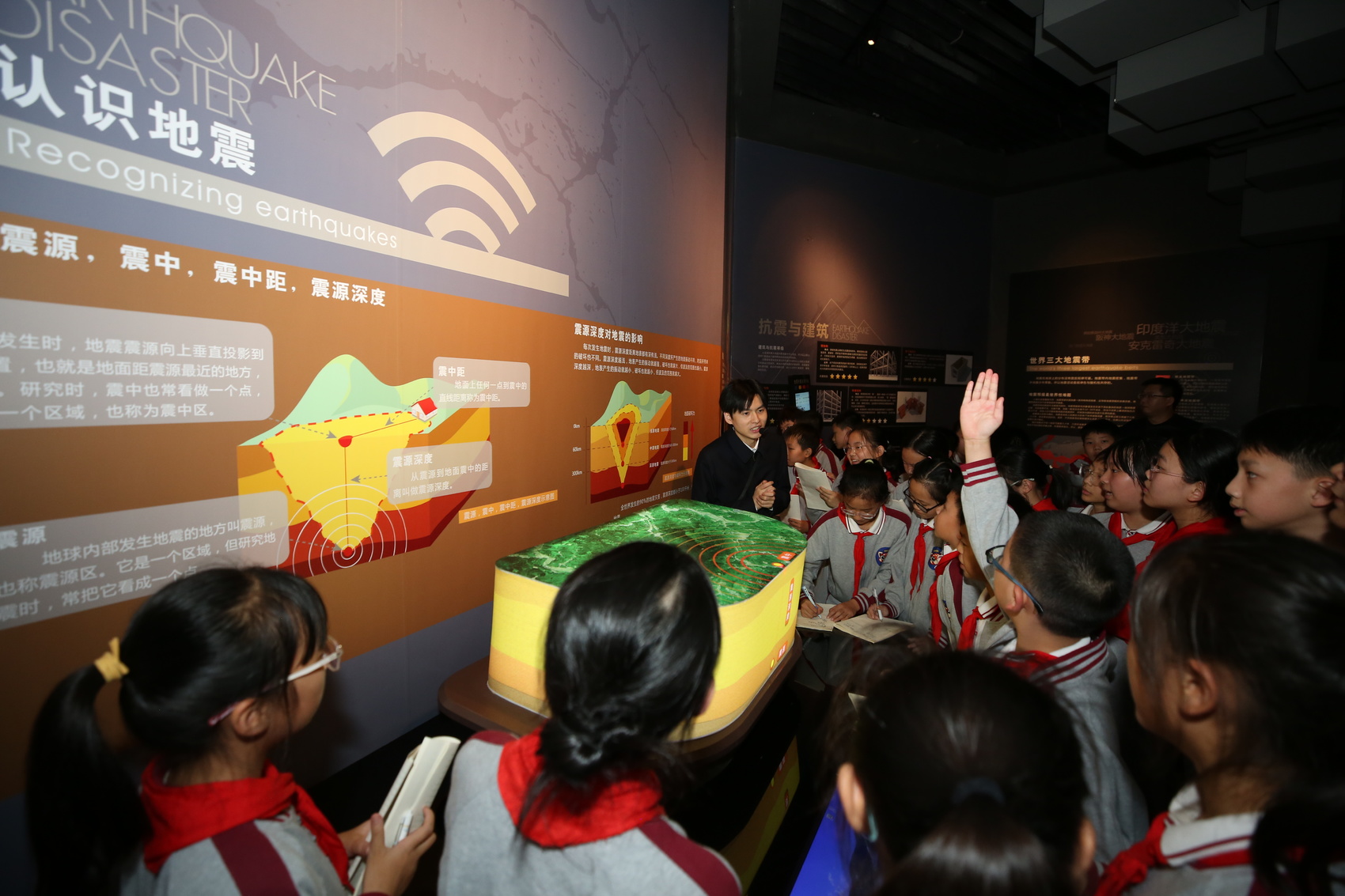 学生们学习地震相关知识。