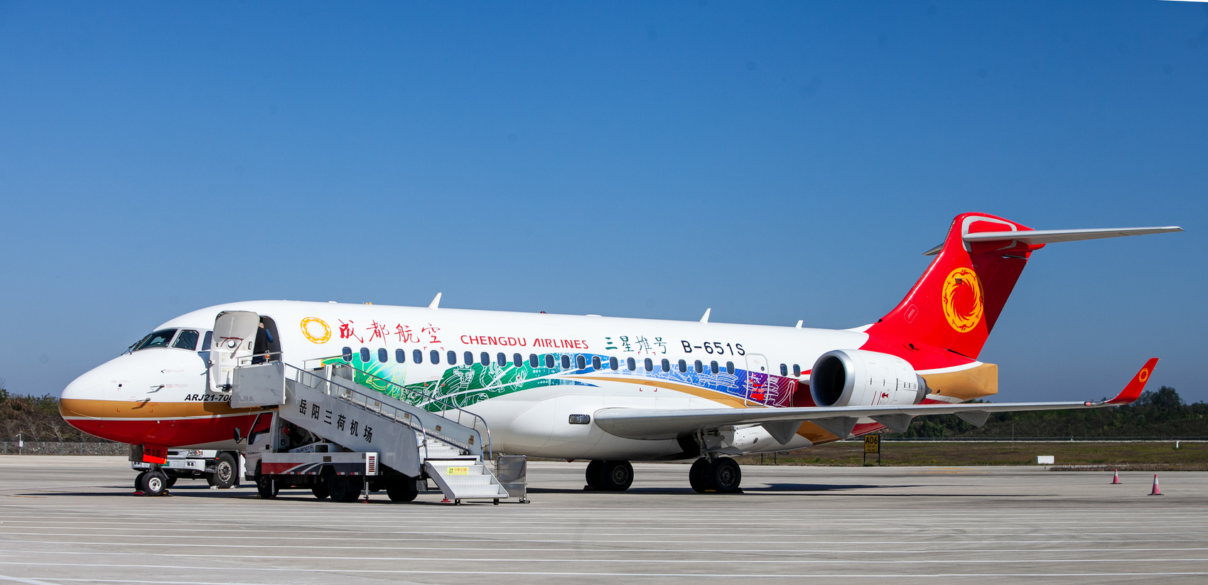 “三星堆号”主题飞机是成都航空与三星堆博物馆深度合作的一次成功尝试,也是共同推广古蜀文化、提升四川文旅品牌形象的重要举措。在三星堆博物馆27周年建馆纪念日来临之际,盛装起飞的ARJ21国产民机“三星堆号”,正实现着古蜀三星堆人对天空的美好向往,也见证着中华民族伟大复兴的光辉历程。