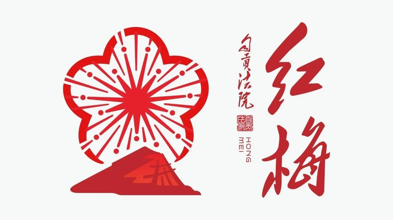 “红梅”法治文化品牌LOGO外部轮廓为红梅形状,内部结合自贡灯城文化,设计出一盏散发着红色光芒的灯,映照着下方代表红色血脉的红岩,红岩大地上屹立着“千年盐都”的标志性遗址建筑“盐井”。整个LOGO体现出自贡国家级文化名城的深厚底蕴,体现自贡法院人继承着坚如磐石、百折不挠的时代精神力量。