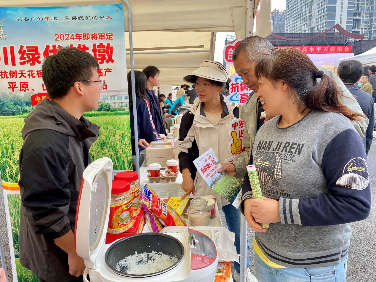 10月26日,温江区光华公园里人头攒动,米香四溢,成都市第十一届“鱼凫杯”优质稻米品鉴活动在此举行。