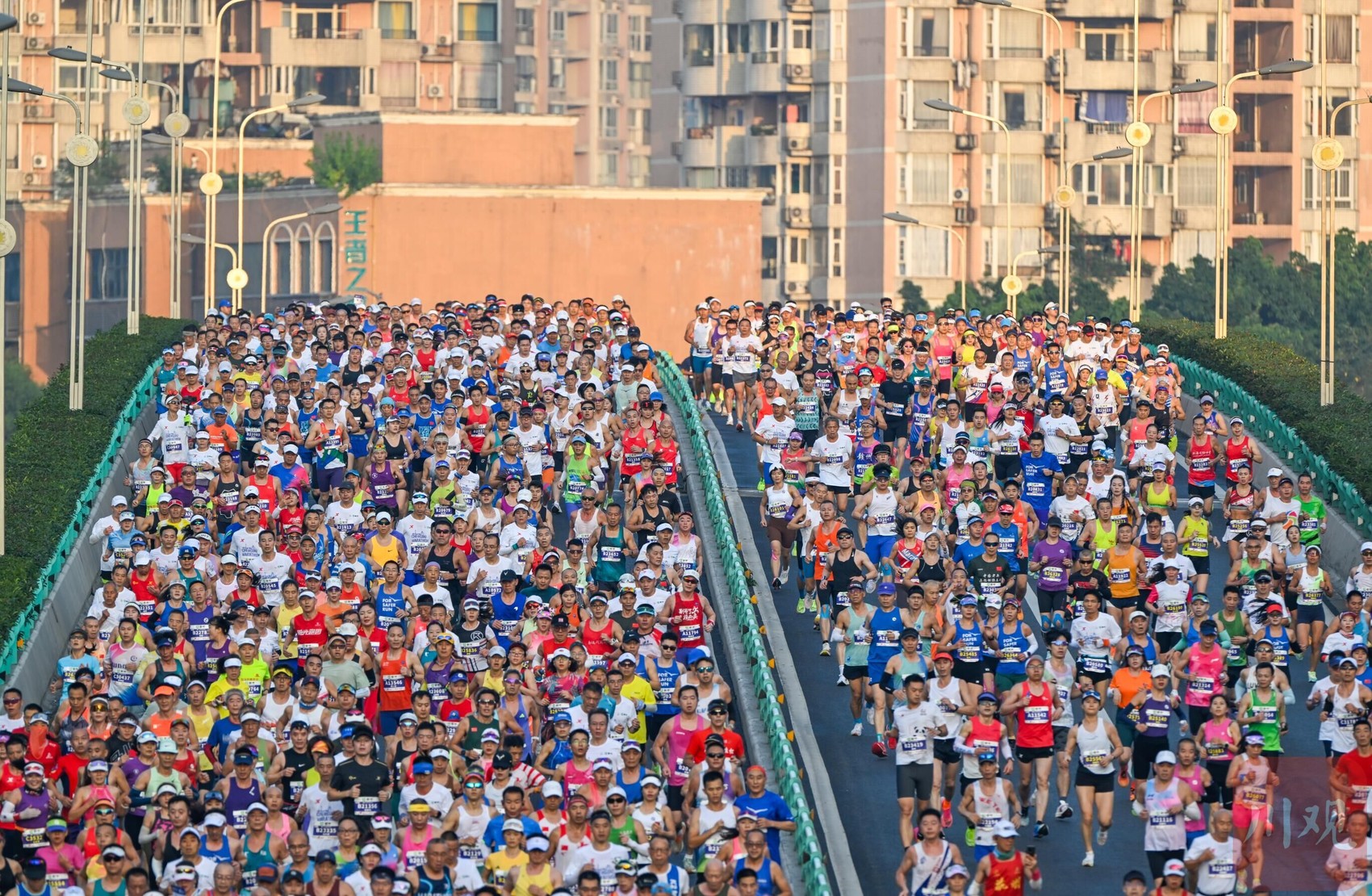 马拉松是群众乐于参与的体育运动,成都马拉松鸣笛开跑,祝贺运动员们在快乐中运动,在运动中快乐!