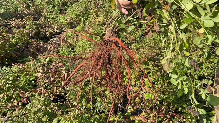 不仅具有良好的抗旱性,组培苗种植的丹参在产量、品质和销售单价上也有不俗表现。“鲜货每亩产量能达2吨,亩产量高出根段种植近百分之三十,而且种出来丹参更红,骨肉更厚,有效成分含量高,每斤能卖8~9元,比一般根段种植丹参高2元,销量也更高。”邱荣亮介绍。