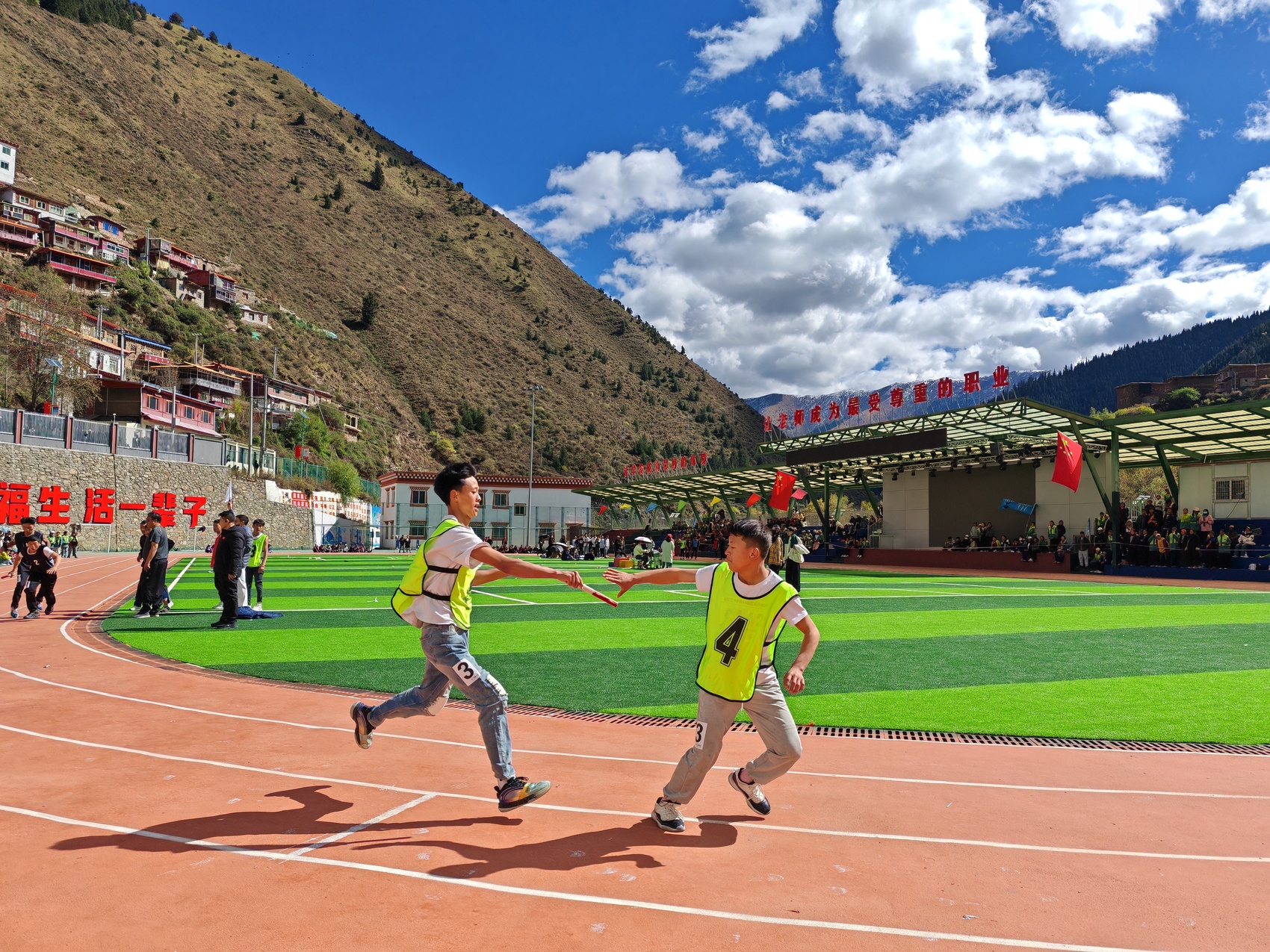 壤塘县中学学生在翻新的田径场上运动。壤塘县中学供图