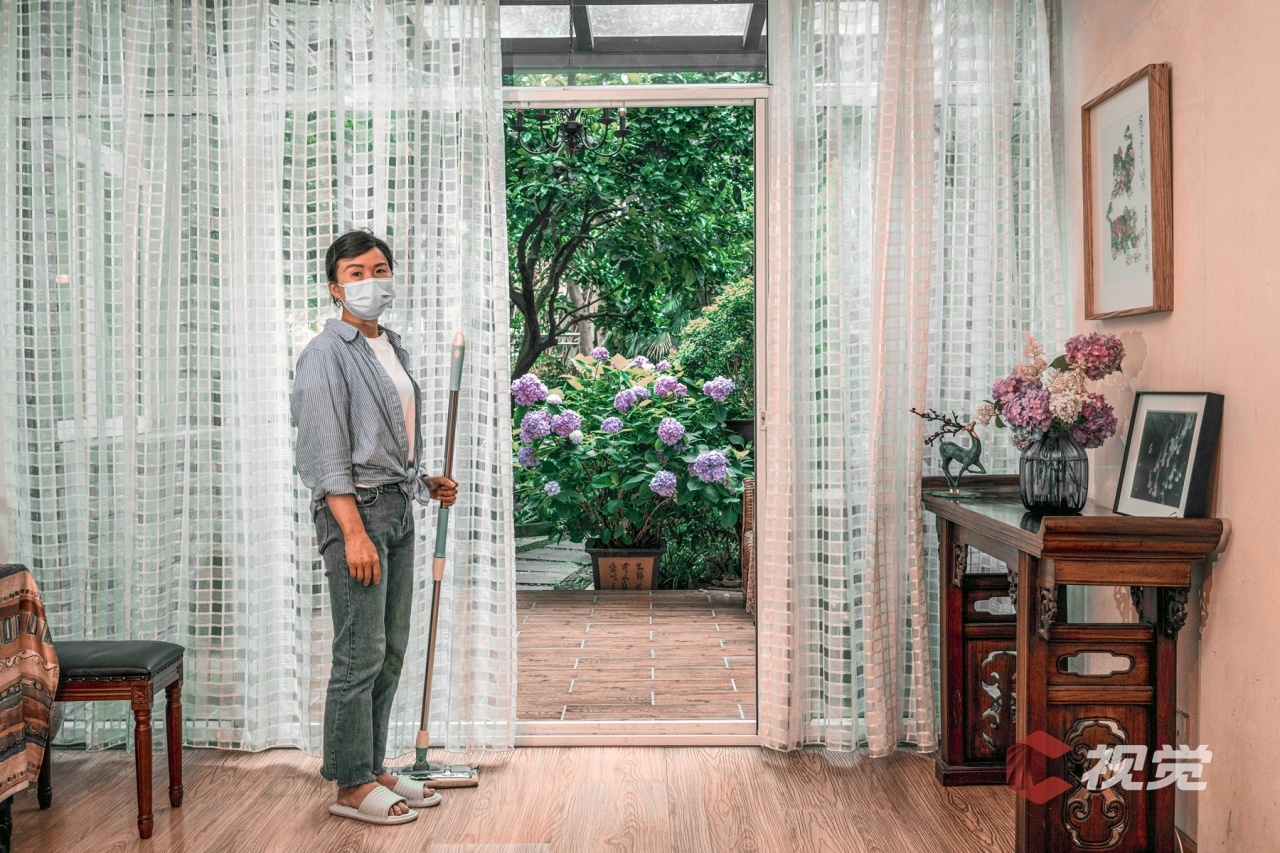 2022年5月18日,王淑君做完家政工作,很有成就感。