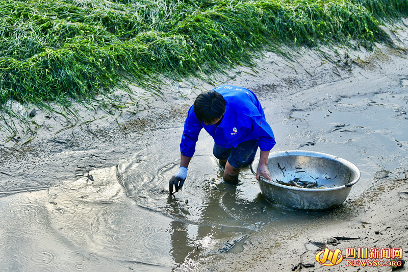 10月29日,“奋楫争上游·改革‘四重’奏——‘川渝一盘棋·唱好双城记’”网络主题活动采访团来到泸州市泸县玄滩镇新山村的巴蜀鱼米之乡泸县玄滩示范区稻虾养殖基地。泸县海牧稻虾专业合作社的员工们在稻田里来回走动,一手拿盆,一手捕捞水里的虾,盆里的虾逐渐满溢,活蹦乱跳。