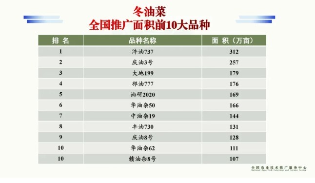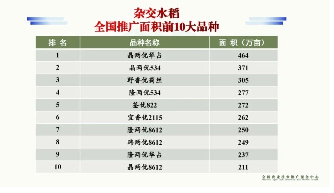 据悉,一年一度的全国种子双交会信息发布会,已成为观察种业的重要视角。本次发布的信息是根据《中华人民共和国统计法》和农业农村部调查统计制度,基于全国农业技术推广服务中心负责的中国农作物种业统计所得。其中,主要粮油和特色作物推广面积前10大品种,是根据各县统计的2023年度面积达0.5万亩以上的品种汇总后进行排序所得。