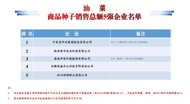 四川种业院企选育的“宜香优2115”“邡油777”分别入选杂交水稻、冬油菜全国推广面积前十大品种。四川种业企业同样有着不俗表现:四川邡牌种业有限公司入选油菜商品种子销售总额5强企业名单,绵阳市全兴种业有限公司入选蔬菜商品种子销售总额10强企业名单。
