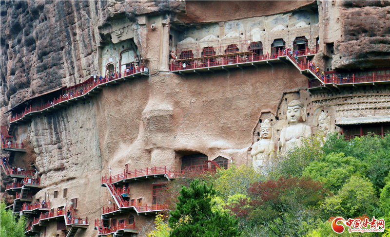 一路向西,名扬世界的敦煌莫高窟与麦积山石窟隔千里相望。