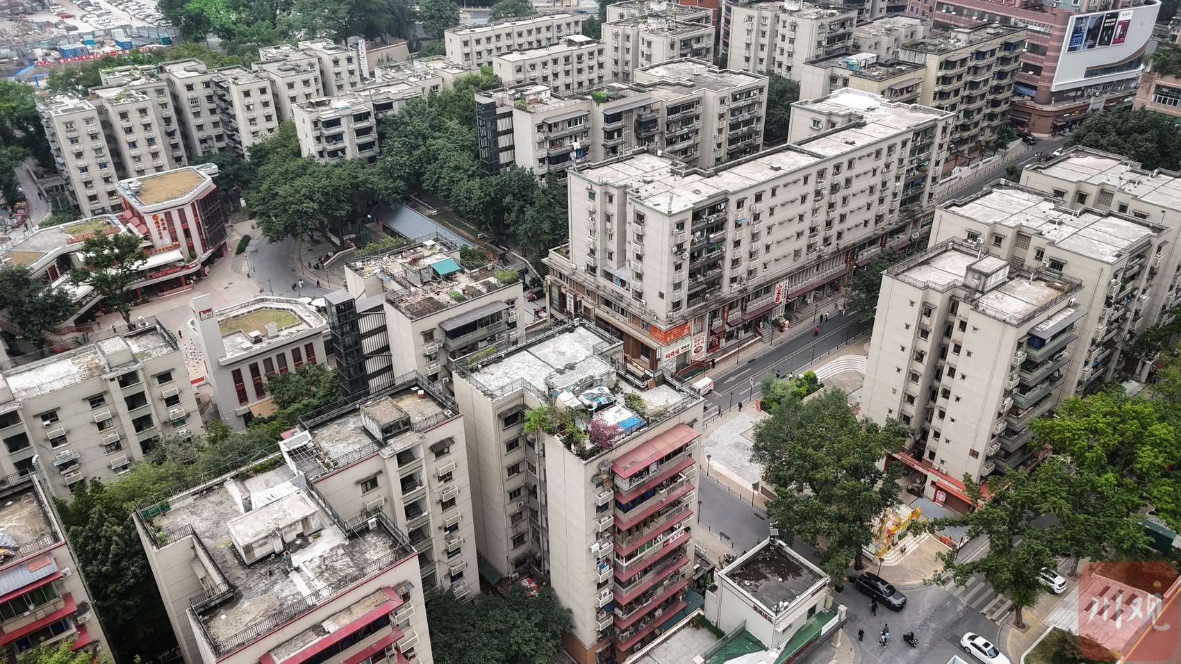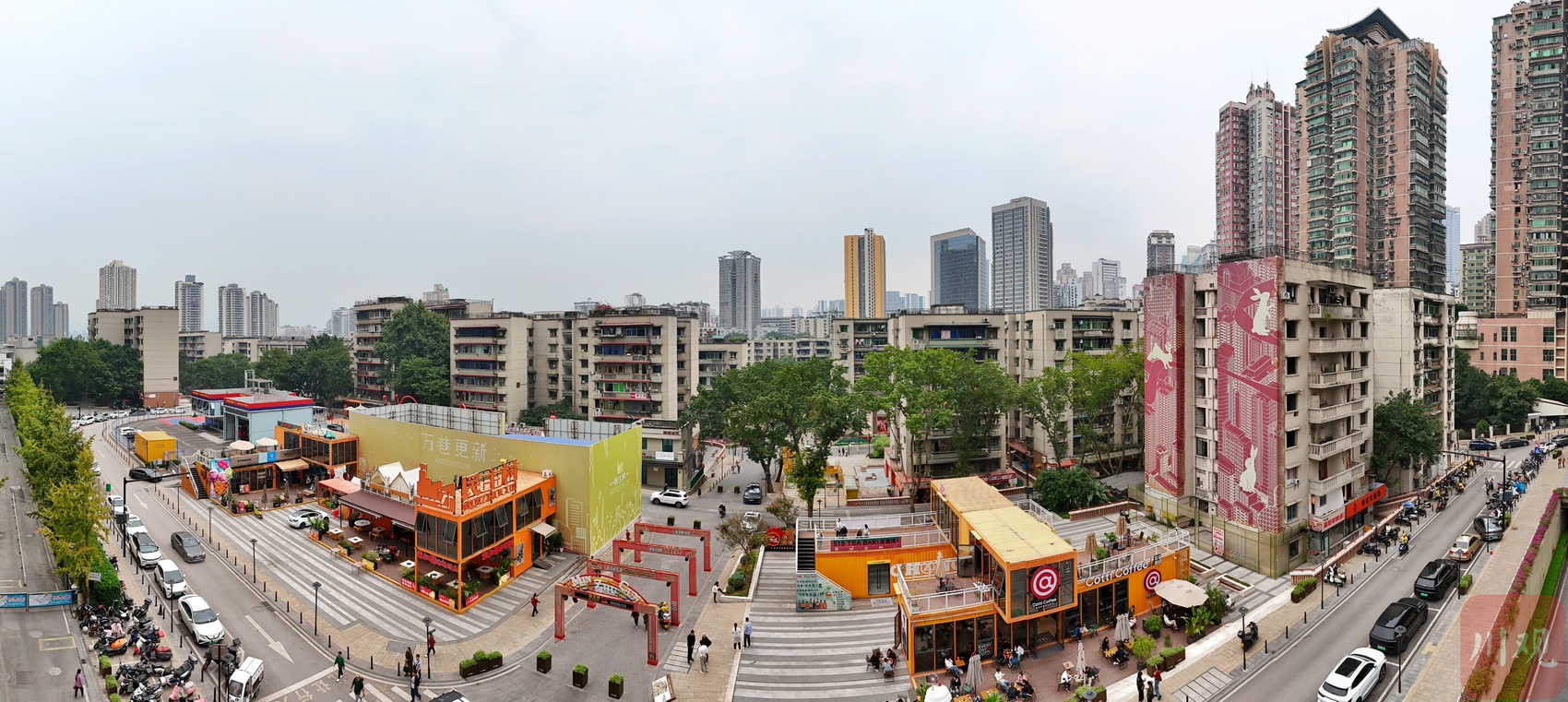 从高空俯瞰,地处重庆九龙坡区地标性商业综合体万象城旁边的民主村社区,身陷高楼林立之地,是典型的“城中村”。随着城市更新项目的实施,如今的民主村早已成了九龙坡区的热门“打卡”地。
