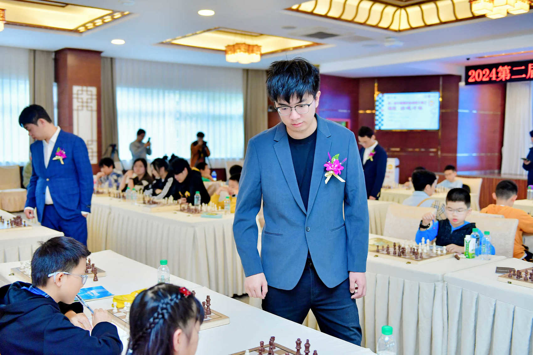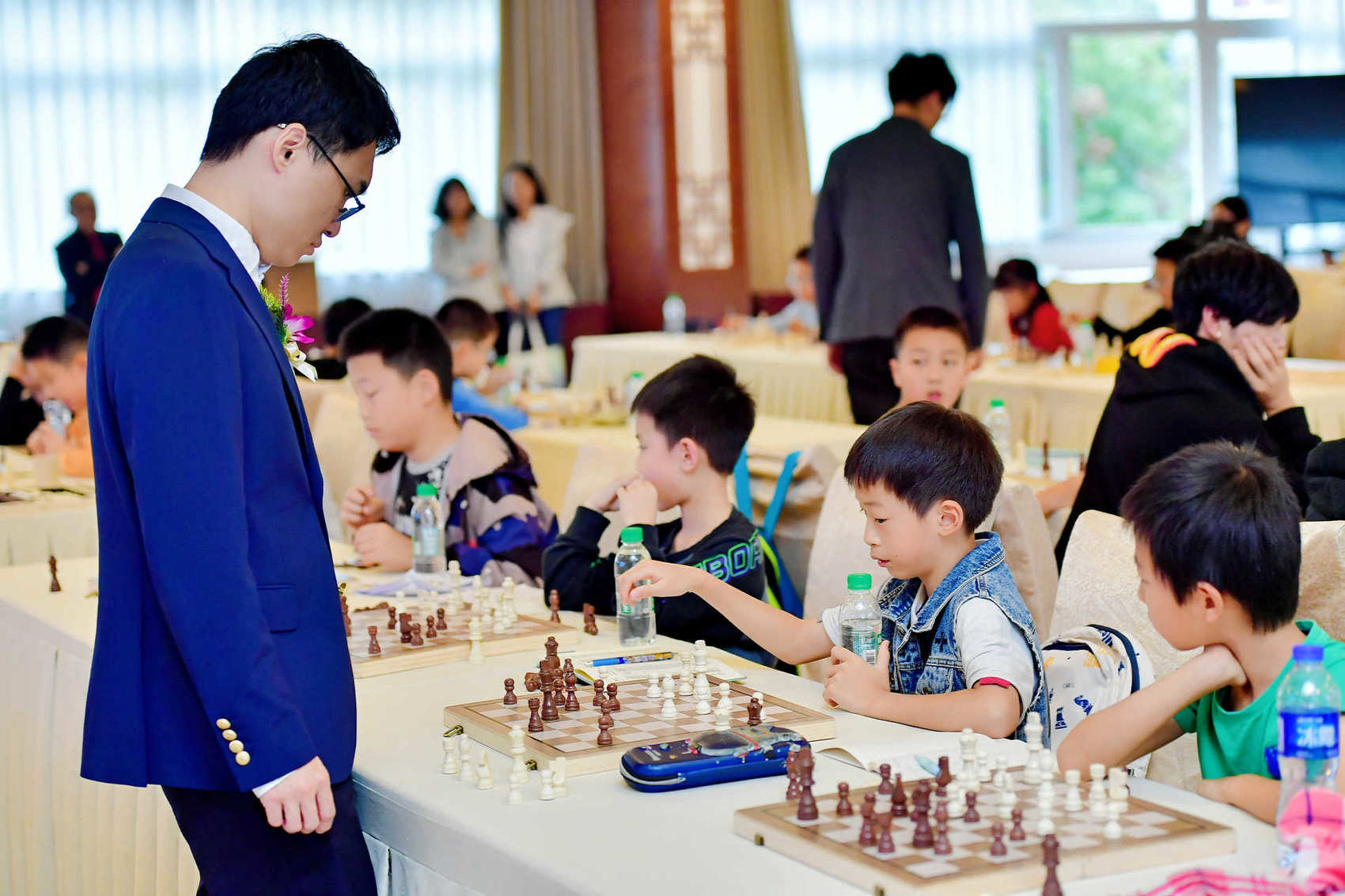11月2日下午,中国国际象棋协会主席叶江川、中国国际象棋协会副主席许昱华以及韦奕、卜祥志、许翔宇、余泱漪、王皓、赵元赫等世界冠军、知名棋手在成都职业技术学院高新校区登坛开讲,并与喜欢国际象棋的小朋友进行了一场别开生面的车轮战。
