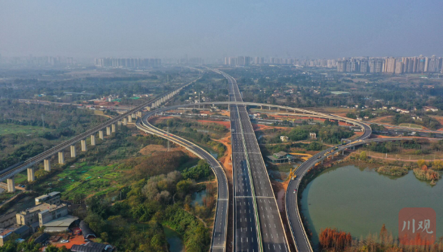此次开通的70公里里程,有10座互通立交,平均每7公里就有一个互通,在国内高速公路极为罕见。四川省公路设计院勘察设计二分院总工程师王义鑫介绍,这样的设计,可以方便更多的道路接入新机场高速,形成快速连接、便捷转换的路网。新机场高速不仅串起了成都绕城、成都“二绕”、成都“三绕”、成自泸、成宜等高速公路,也与沿线的三环路、车城大道、五环路、双简路等市政道路方便衔接。