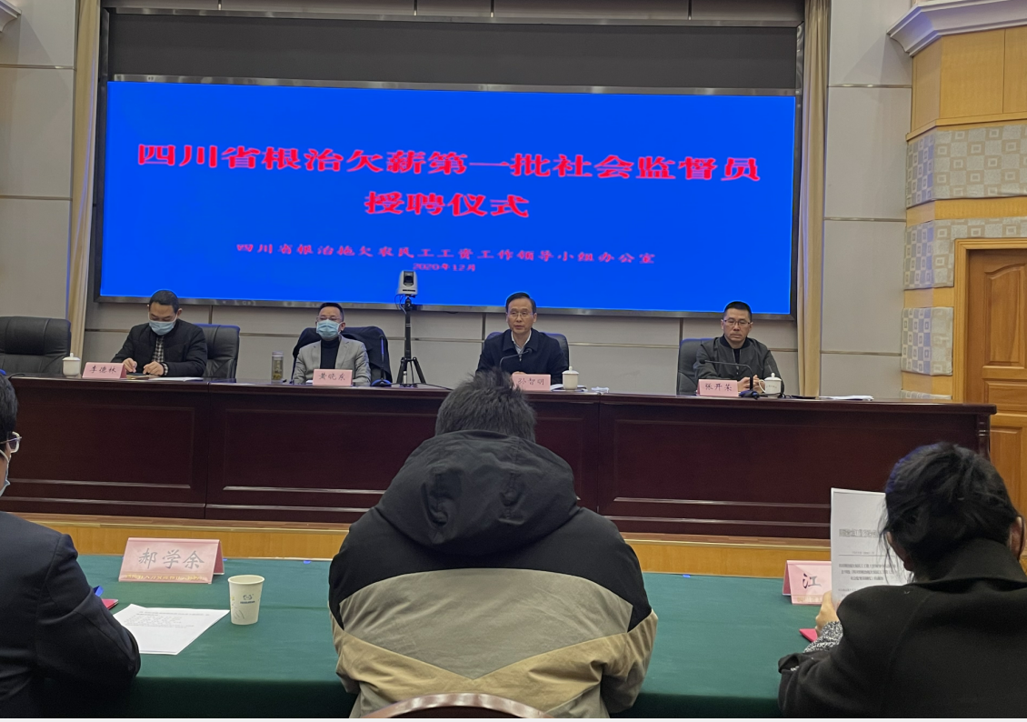 12月23日,四川省根治拖欠农民工工资工作领导小组办公室举行四川省第一批根治欠薪社会监督员授聘仪式,20名来自人大、政协、群团组织、新闻媒体、行业协会等领导域的人员,获聘为四川首批根治欠薪社会监督员。
