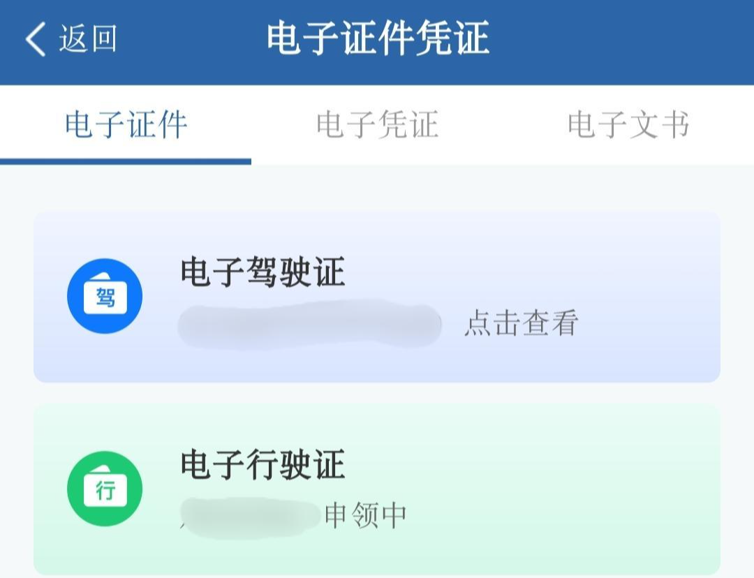 申领方法:市民进入“交管12123”APP后,在电子证件凭证一栏标有“可申领”标志,点进去在“电子证件”一栏即可看到电子行驶证申领按钮,点击申领后,在一个工作日内即可获得电子行驶证。
