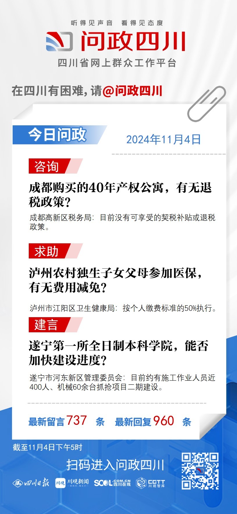 问政四川、有问必答,为老百姓解读政策规定,让老百姓了解、知晓和掌握,便于根据自身情况有的放矢!