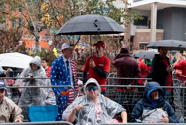 当地时间4日,共和党总统候选人特朗普的支持者在密歇根州大急流城冒雨等待参加特朗普的最后一次竞选集会 图源:美媒