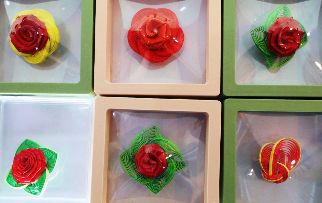 在长期的艺术实践中,陈云华不断摸索与创新,通过精湛技艺和独特创意,赋予了竹编艺术品丰富的色彩和形态。“我们精选优质竹材,经过精细打磨,使其呈现出自然细腻的光泽。在胸针的设计中,还特别注重固定部分的编织技法,既保证了稳固性,又提升了作品的精致度与典雅气质。”陈云华介绍道。