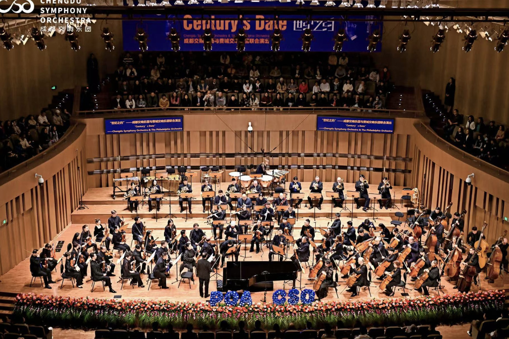 11月6日晚,“世纪之约”成都交响乐团与费城交响乐团联合演出在成都交响乐团音乐厅上演。有着百年历史的费城交响乐团,携手始建于1969年的成都交响乐团,两大乐团近百名音乐家首度同台演出,联袂为成都观众带来了一场音乐盛宴。11月7日晚,费城交响乐团将移师五粮液文化体育中心,继续用音乐续写音乐友谊。