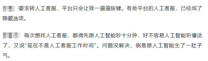 智能客服不智能,那就打人工客服试试?不少网友反映,能直接解决问题的人工客服很难打通。用户接入人工客服,得经过层层阻碍。