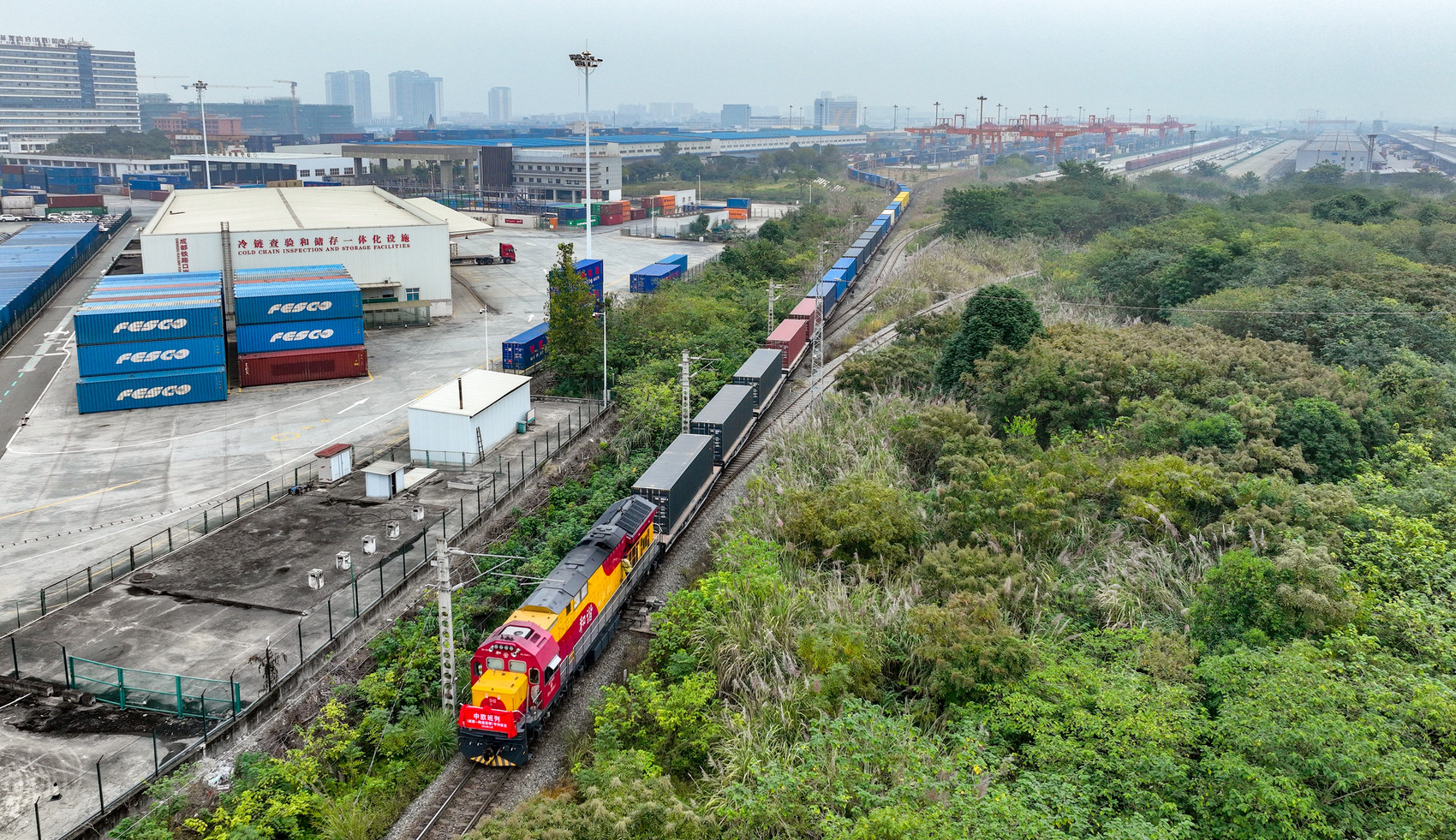 11月8日,一列满载55个集装箱汽车零配件的专列经青白江海关快速验放,从成都国际铁路港发出,将经阿拉山口出境,预计约15天后抵达俄罗斯陶里亚蒂。
