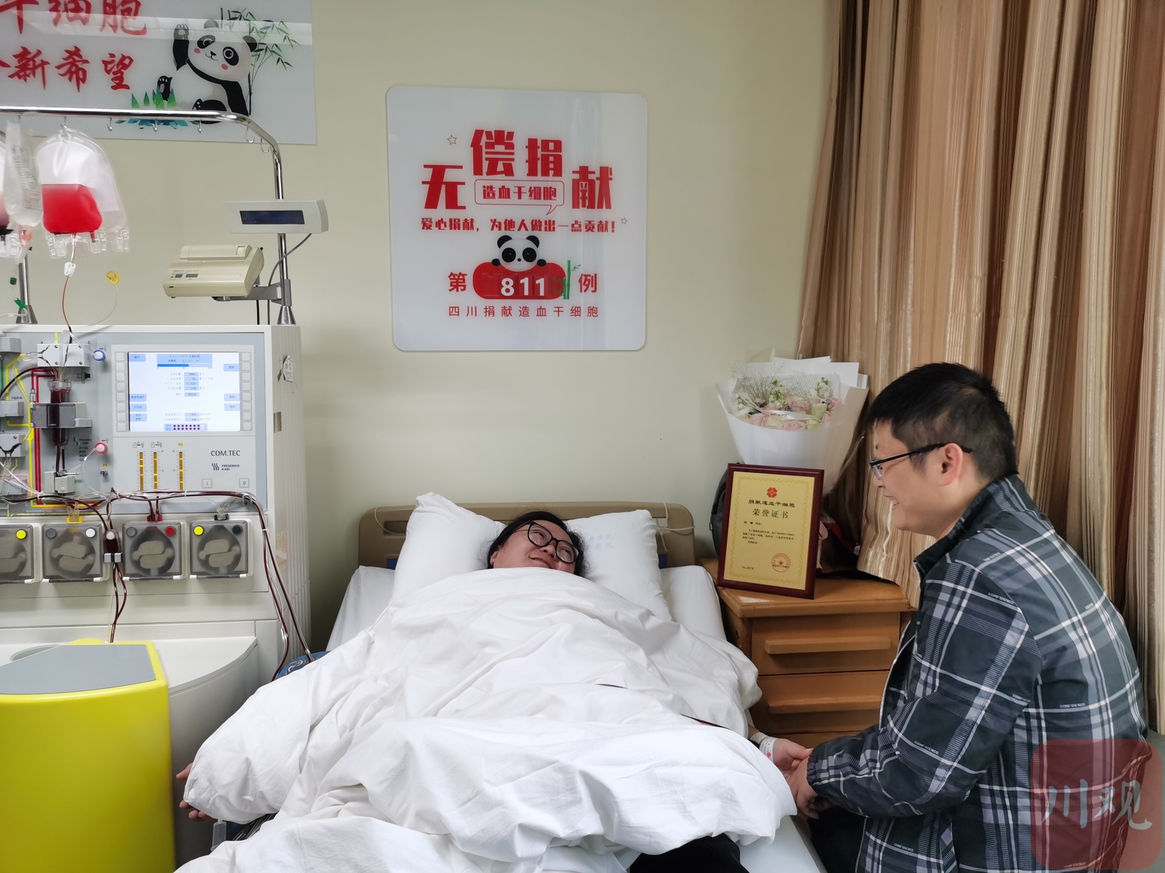 11月8日中午12点40分左右,四川省人民医院血液病科细胞分离室内,237毫升造血干细胞混悬液被成功提取,耗时5个小时。专人将马不停蹄地将这份希望送到北京,预计今晚10点,一位患有骨髓异常增生综合征的患者将迎来新生。