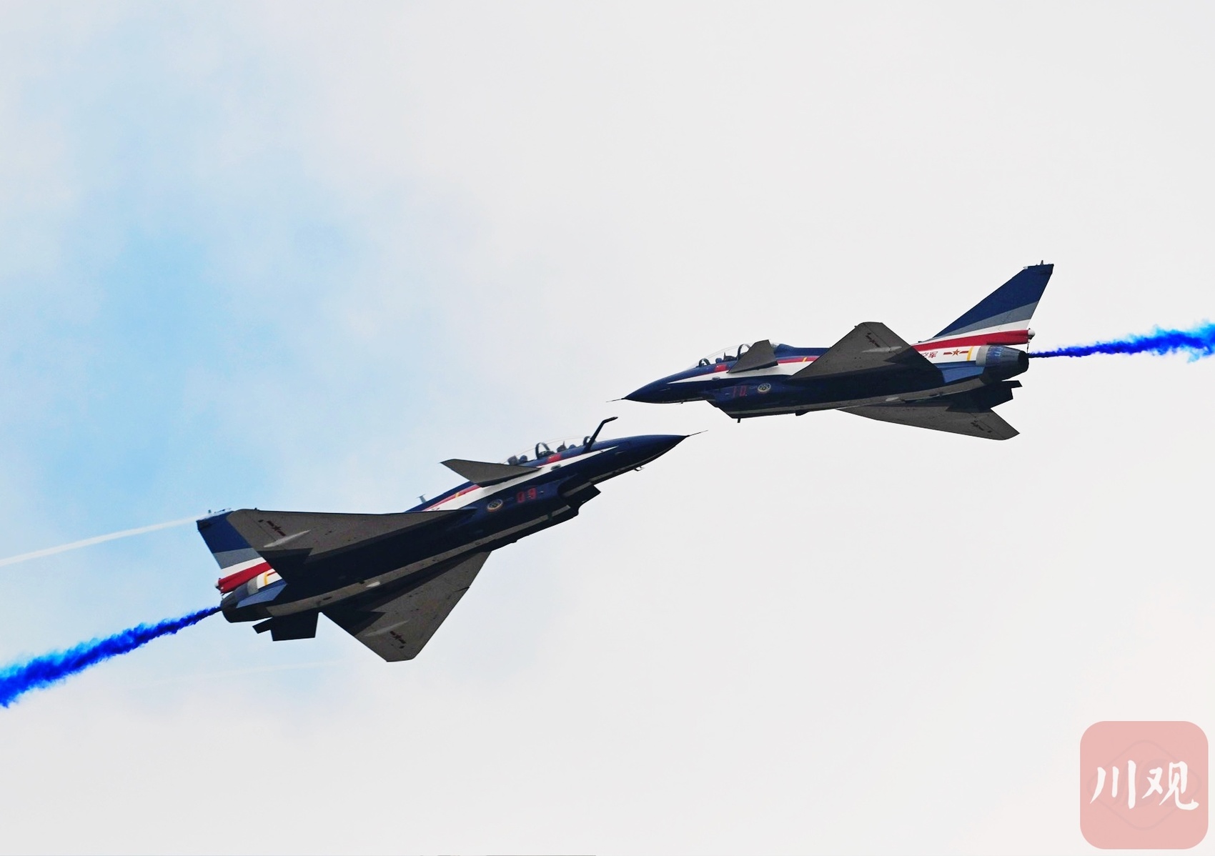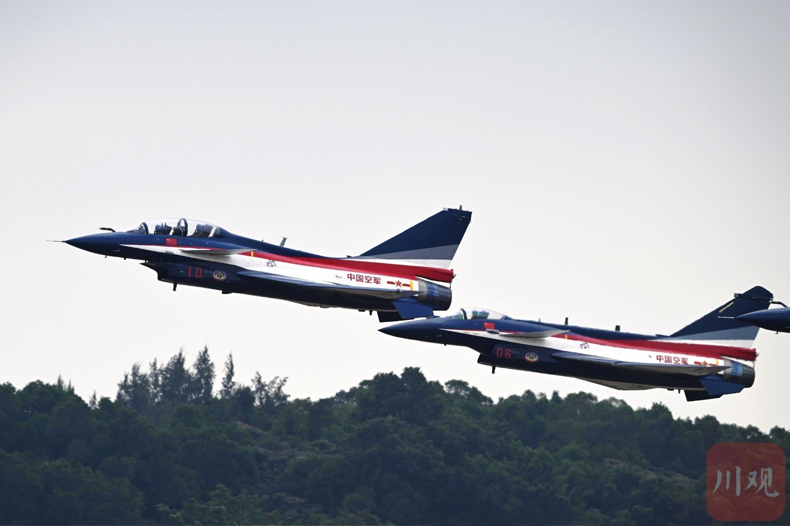 中国空军“八一”飞行表演队组建于1962年,时称“空军护航表演大队”。1987年8月1日,正式启用“中国人民解放军空军八一飞行表演队”番号。此次是中国空军“八一”飞行表演队的第十一次中国航展之旅,也是换装歼-10C战机后首次亮相中国航展。现场,“八一”飞行表演队上演了六机菱形编队俯冲、对冲、双机绕轴滚转等特技动作。