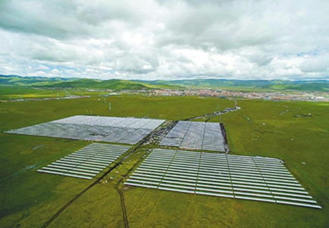 已建成投产的红原县花海光伏电站是全球首座高原高效光伏电站实现了生态环保与清洁能源生产的有机结合。