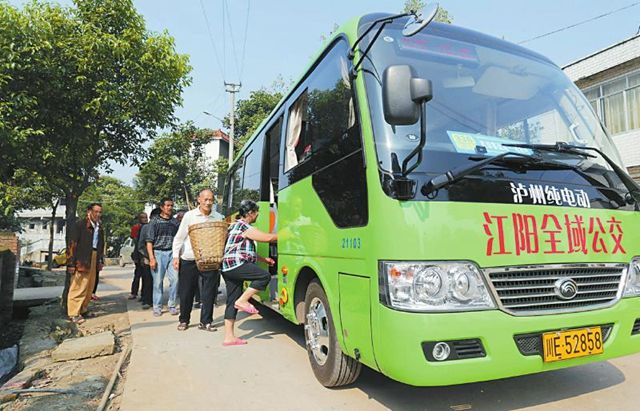 泸州市江阳区泰安镇,村民乘坐纯电动公交车。