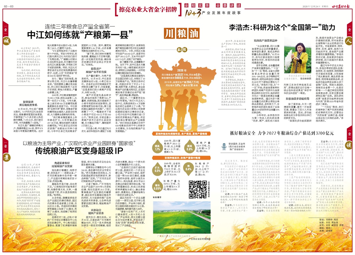 12月24日,四川农村日报推出《擦亮农业大省金字招牌 全程实录全景讲述10+3产业发展年度故事》系列报道之川粮油篇。