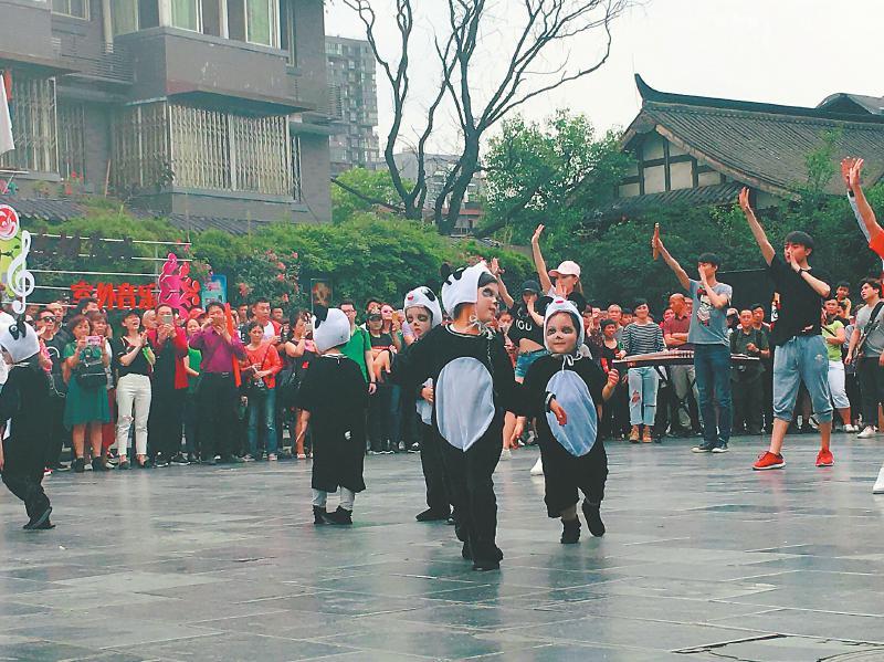 这首歌也在成都著名景点宽窄巷子掀起音乐快闪旋风,歌手在街头“快闪”唱歌,配以盖碗茶馆里堂倌右手握长嘴铜茶壶,边唱喏边转走,加上川剧演员的变脸串场,让小朋友穿上熊猫服与观众互动,“这就是一场川味浓郁的‘音乐火锅’。”这首《我住长江头》“90后”曲作者、成都葫芦文化传媒音乐总监杨柠豪说道。这只年轻的成都本土音乐人团队,曾刘德华、谭维维、郁可唯、周深、王铮亮合作,跨界影视《琉璃》和游戏《王者荣耀》,做得了童声合唱,也能和杂交水稻之父袁隆平一起写歌《我有一个梦》,是成都充满活力的年轻音乐代表。