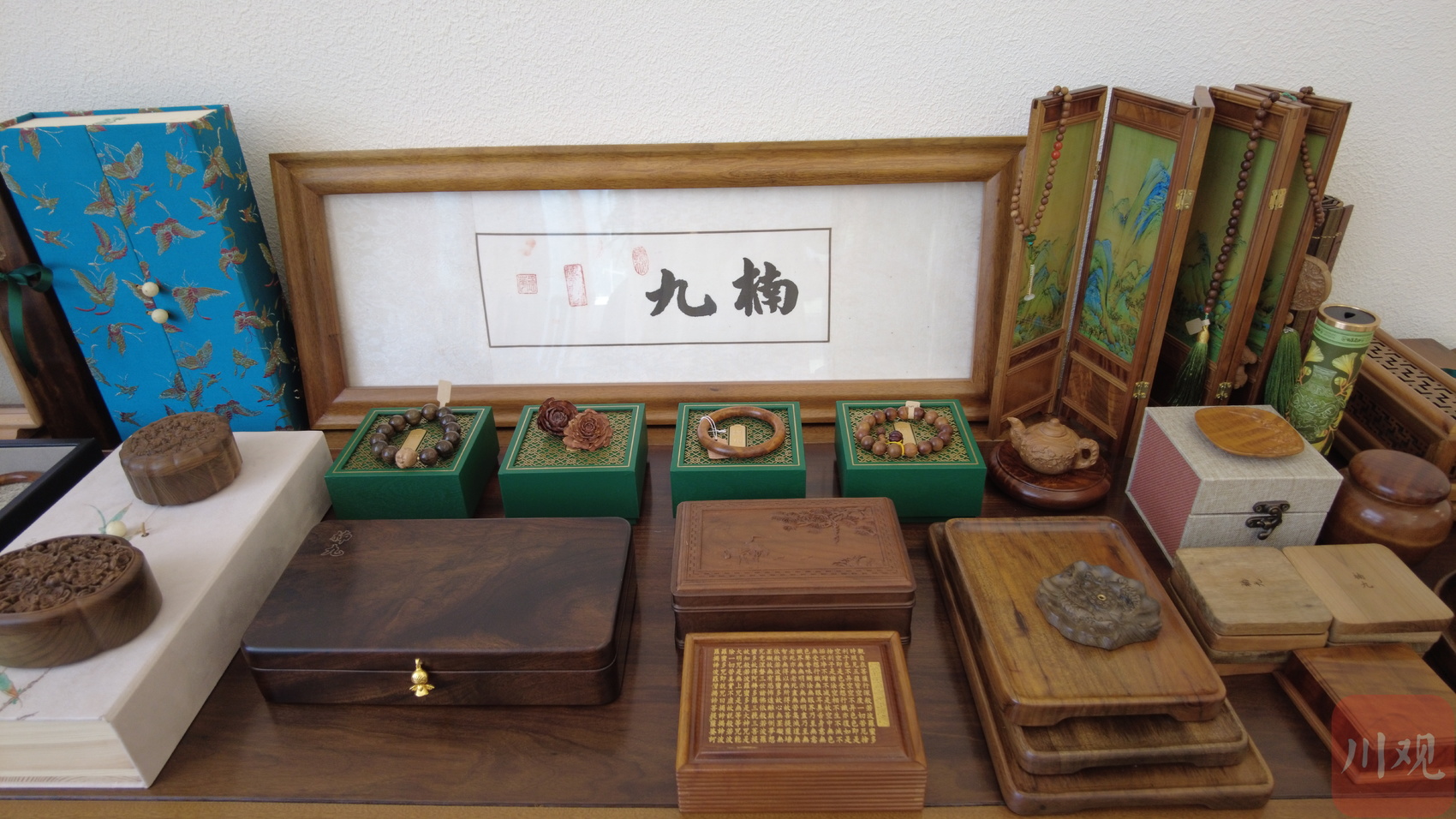 走进金丝楠木美学馆,从桌椅到衣柜、梳妆台,从艺术品摆件到木梳、手链等精美首饰,皆用金丝楠木材质打造,其淡雅的色泽和天然的纹理让馆内充满了古典的韵味。